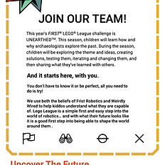 Join our LEGO Legue Team Build and program a LEGO Spike robot to compete against other teams at Local Lego Competition. Cost includes: Competition T-shirt All Competition Registrations Semi Weekly (or more) from May until January (depending on competition results may go longer) Not included in price is costs associated with travel to competitions including transportation, food , lodging etc. Cost is $200 Signup fee, and monthly fee of $125 (4 months) Or pay in full for 10% off the month fees for a total of $650 To pay monthly sign up here and then check out our subscriptions to sign up for the automatic monthly payments. https://www.weirdlywired.com/pricing-plans/checkout-1?planId=98fd77ff-ed8f-422a-9e88-f336e147ce6c Meeting Dates on the Calander will change throughout the year based on other activates and will posted 1-2 months in advanced.